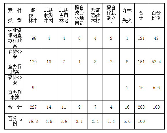 (四)涉林案件查处力度不大,以打促防效果不佳。2013年以来,县林业局森林资源站和森林公安局办案来源绝大多数是群众举报,主动发现案件线索很少。所办案件刑事处罚少,经济处罚多,查办的288件涉林案件中,刑事案件16件仅占5.6%,其中滥伐林木案9件,森林失火案7件。办案节奏缓慢,有的案件大半年时间内还未侦查终结,16件刑事案件法院已作出有罪判决7件,其中5件是失火案件,只有2件是滥伐林木案件。按规定对乱砍滥伐林木者,除给予经济和刑事处罚外,还要责令其补种砍伐滥伐数量5倍以上的林木,这项规定基本没有执行。办案中存在办人情案、关系案、金钱案现象,罚款了事,仅仅是为办案而办案,为查处而查处,结合办案预防教育工作未有效开展。由于处罚不到位,作案人员觉得无所谓,一旦被查,就四处通关系、搞勾兑,未把林业执法放在眼里,在一定程度上藐视林业执法,因而屡罚不改、多次重复作案者甚多,执法办案的法律效果、社会效果未能充分显现。