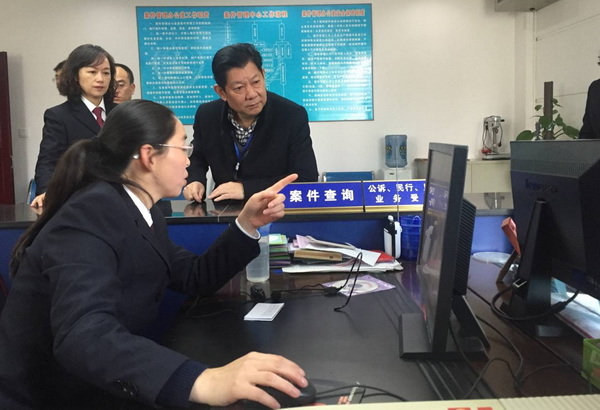 调研组一行在区检察院党组书记、检察长朱瑛和其他班子成员的陪同下,实地走访了该院“两房建设”施工现场,考察了“12309检察服务中心”、“群众家门口的检察院”接访中心和案件管理中心运行情况,听取了该院扫黑除恶专项斗争及未成年人保护成果展示介绍,观看了“远程提讯”和侦监办案过程演示,并与工作中的检察干警进行了亲切交谈。