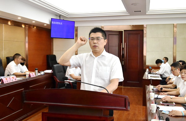 会上,新任命的区人民政府副区长何建新在全体与会人员的见证下进行了宪法宣誓,区人大常委会主任戚辉为何建新颁发了任命书。(嘉陵区人大办 王军)