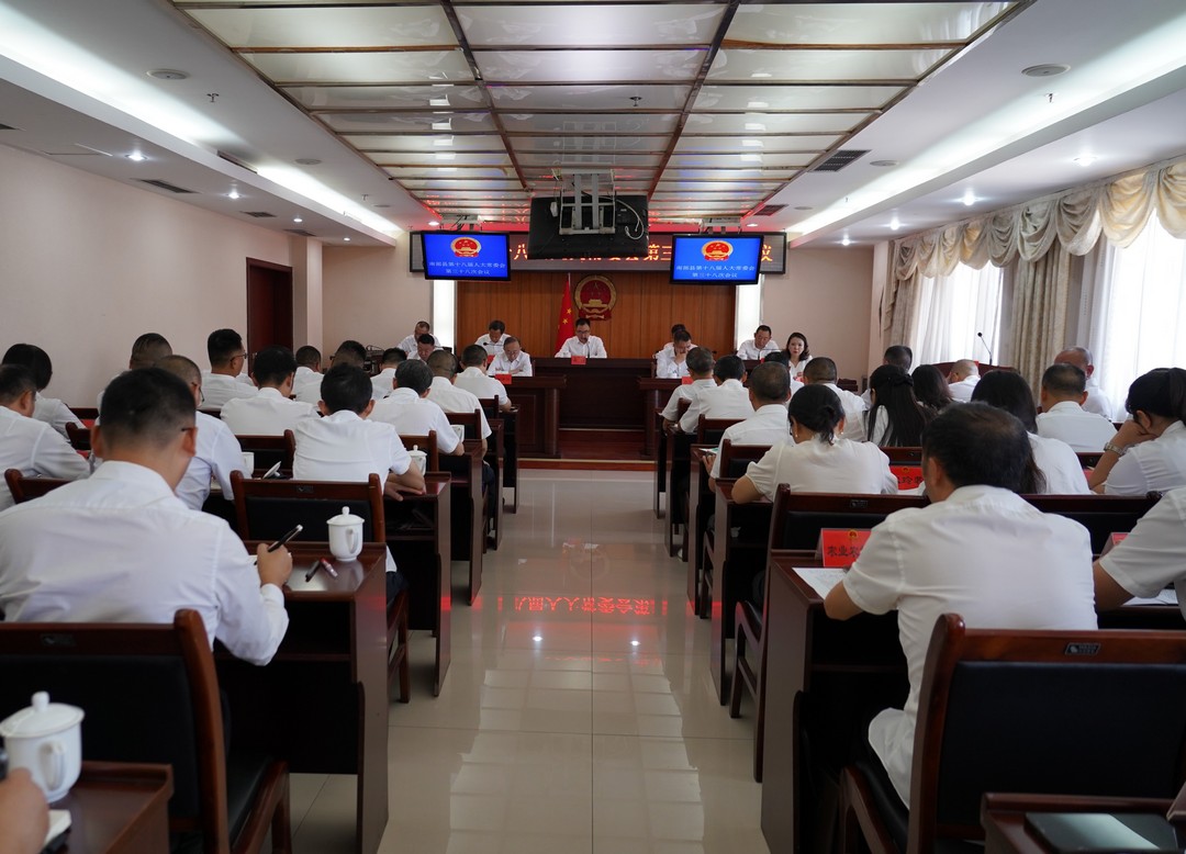 8月22日,南部县第十八届人大常委会举行第三十八次会议。县人大常委会主任余翔主持会议,县人大常委会副主任杜济、黄在伦、邵大庆、刘坚及常委会委员共37人出席会议。