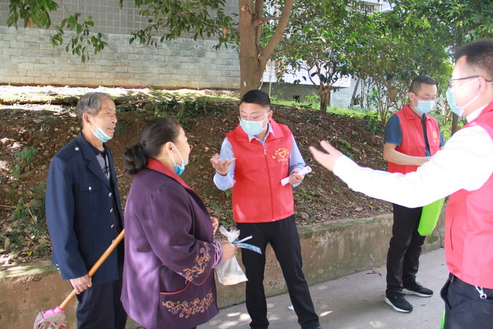 党员们穿着鲜红色志愿者马甲,佩戴党徽,贴海报,发传单,主动与小区居民攀谈,用朴实真诚的语言与群众交流,在拉家常、嘘寒暖中宣传防范电信网络诈骗的知识、普及疫情防控的规定要求。