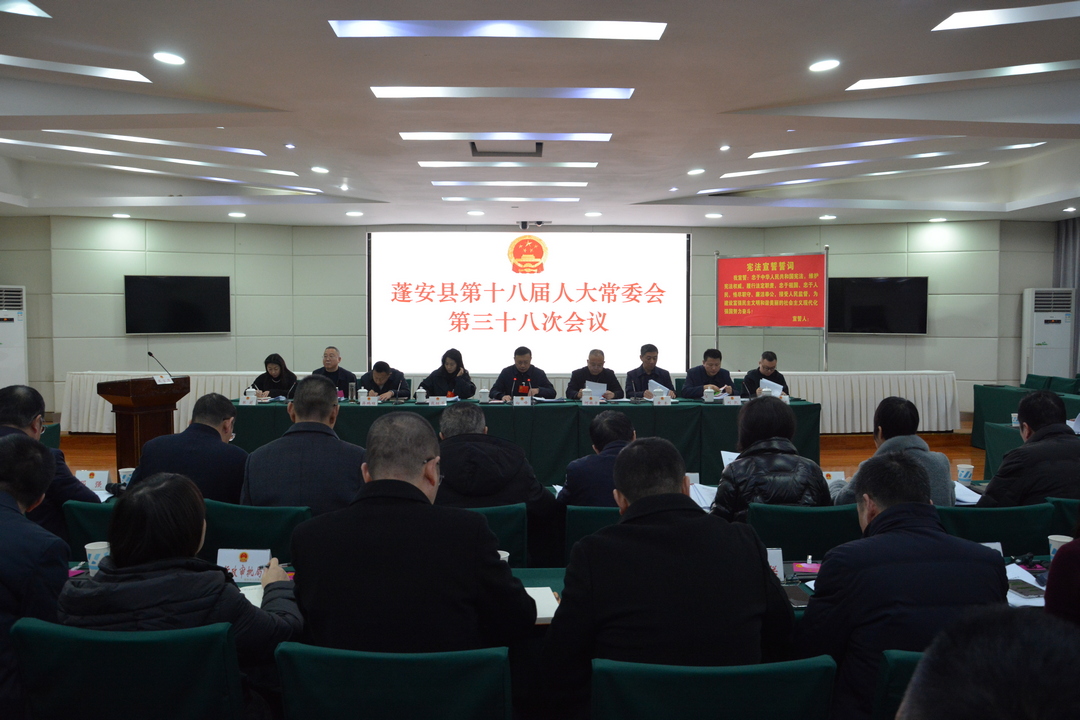 12月26日,蓬安县第十八届人大常委会第三十八次会议召开。县人大常委会主任向峰主持会议并讲话。县人大常委会副主任何振宇、段继芳、黄奎及委员共23人出席会议。