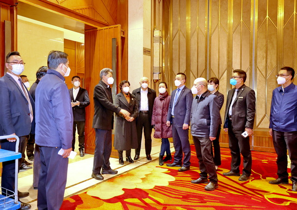 随后,潘国华一行前往金鸿大酒店、北湖宾馆、凯悦嘉轩酒店、东方花园酒店等地,仔细查看酒店客房、餐厅和会议室等处,了解会议期间代表的用餐、住宿、参加会议以及医疗、应急、安保等方面的准备情况。潘国华叮嘱酒店及相关单位负责人,要确保酒店干净整洁清爽,管理规范有序,严格按照会议要求,细化工作举措,落实工作责任,全力做好各项服务保障工作。