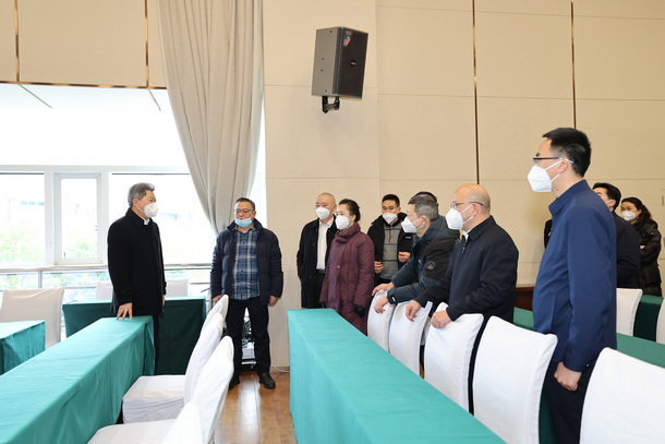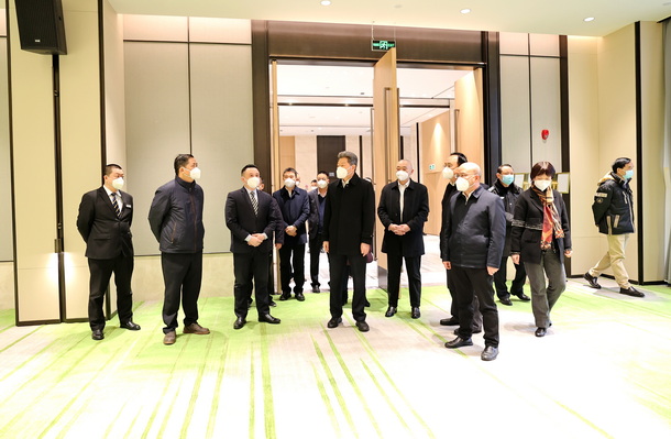 市七届人大二次会议召开在即,12月30日下午,市人大常委会主任潘国华带领大会筹备工作相关人员前往代表驻地及会场,检查会场布置、住宿餐饮、疫情防控、安全保卫等各项工作筹备情况。