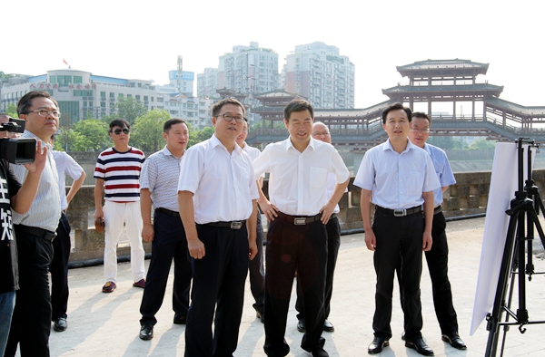 陈圣伦一行先后视察了顺庆区西河廊桥及明清防古街、嘉陵江旅游港码头,高坪区白塔景区、都京丝绸特色小镇,嘉陵区黄金江岸等主城区旅游产业项目规划建设情况,体验了嘉陵江主城区段水上线路观光游览。